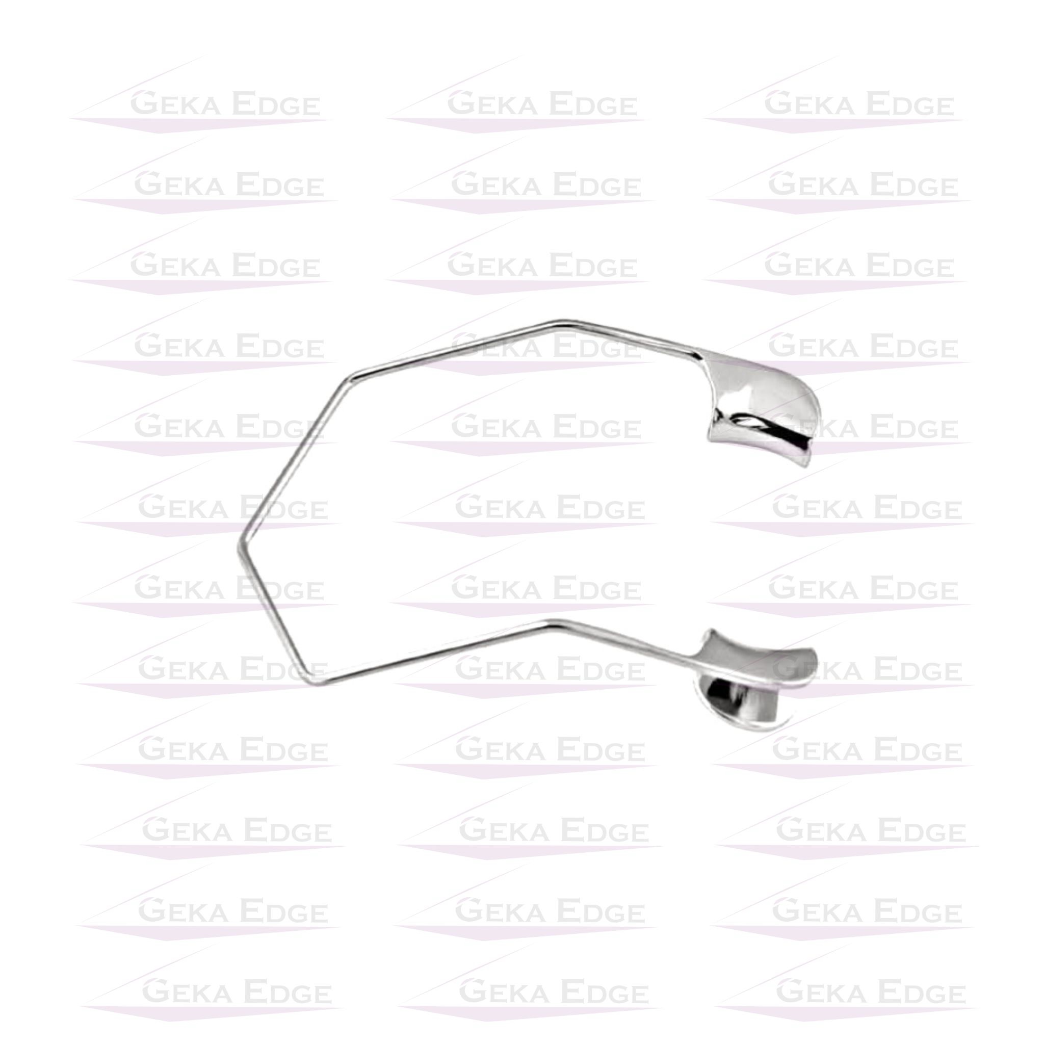 Its V-shaped wire frame and curved solid blades conform to the facial contours, exerting minimal pressure on the globe while effectively preventing eyelashes from entering the surgical field.