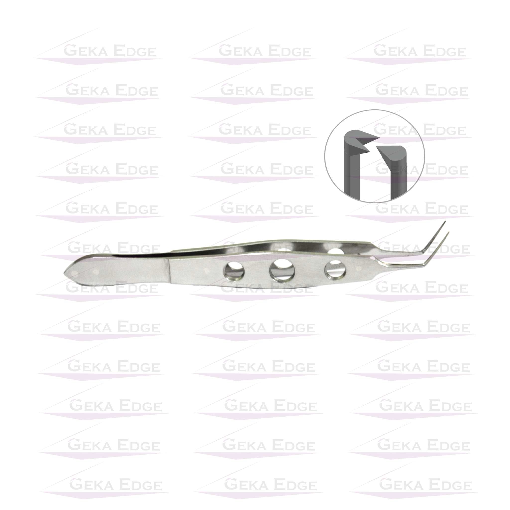 The Kelman-McPherson Forceps – 1×2 Teeth – 0.12mm is an angled ophthalmic forceps used in cataract surgery, corneal suturing, and IOL implantation for handling fine tissues. Its ultra-fine 0.12mm 1×2 teeth on angled shafts with tying platform provide steady grip on cornea, iris, or sutures, enabling accurate knot tying and tissue control with low trauma risk.