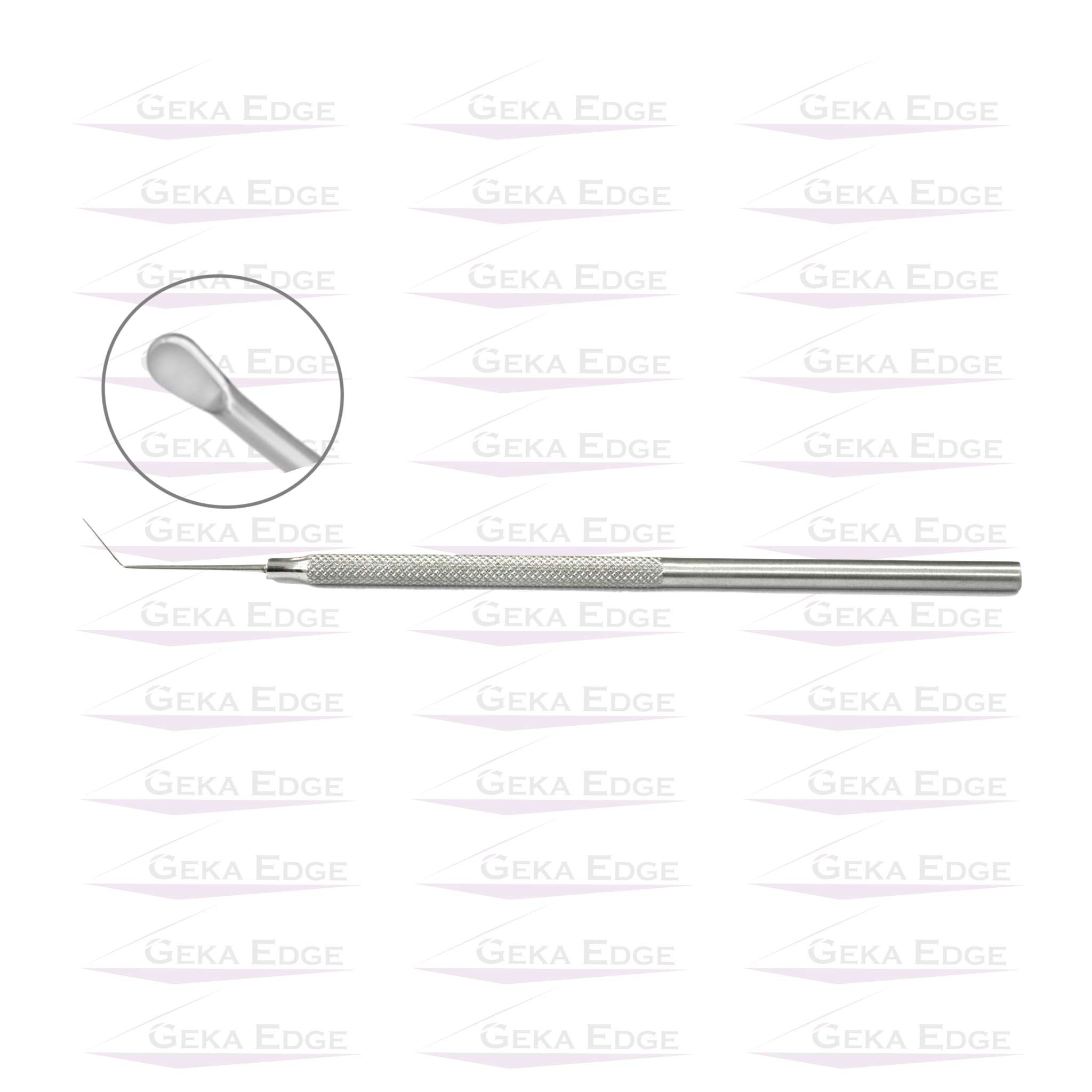 The Pisacano Nucleus Rotator is a specialized ophthalmic nucleus manipulator used in phacoemulsification cataract surgery for rotating and repositioning the lens nucleus. Its angled shaft with smooth, bulbous or olive-shaped tip allows gentle engagement of the nucleus periphery, enabling controlled rotation within the capsular bag to aid chopping or emulsification while protecting the posterior capsule.